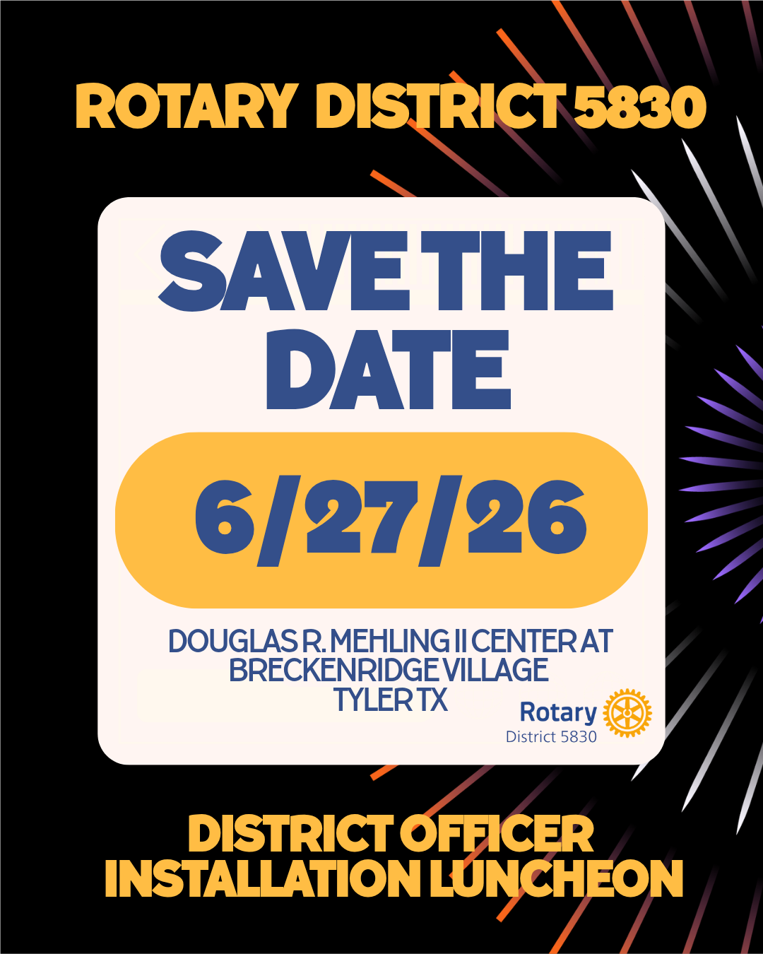 Rotarians are passionate people driven by the ideal of service. As a part of Rotary, you get to network with and give back to communities around the globe. District 5830 is made up of 46 clubs and approximately 1400 members across NE Texas, SE Oklahoma, and SW Arkansas.